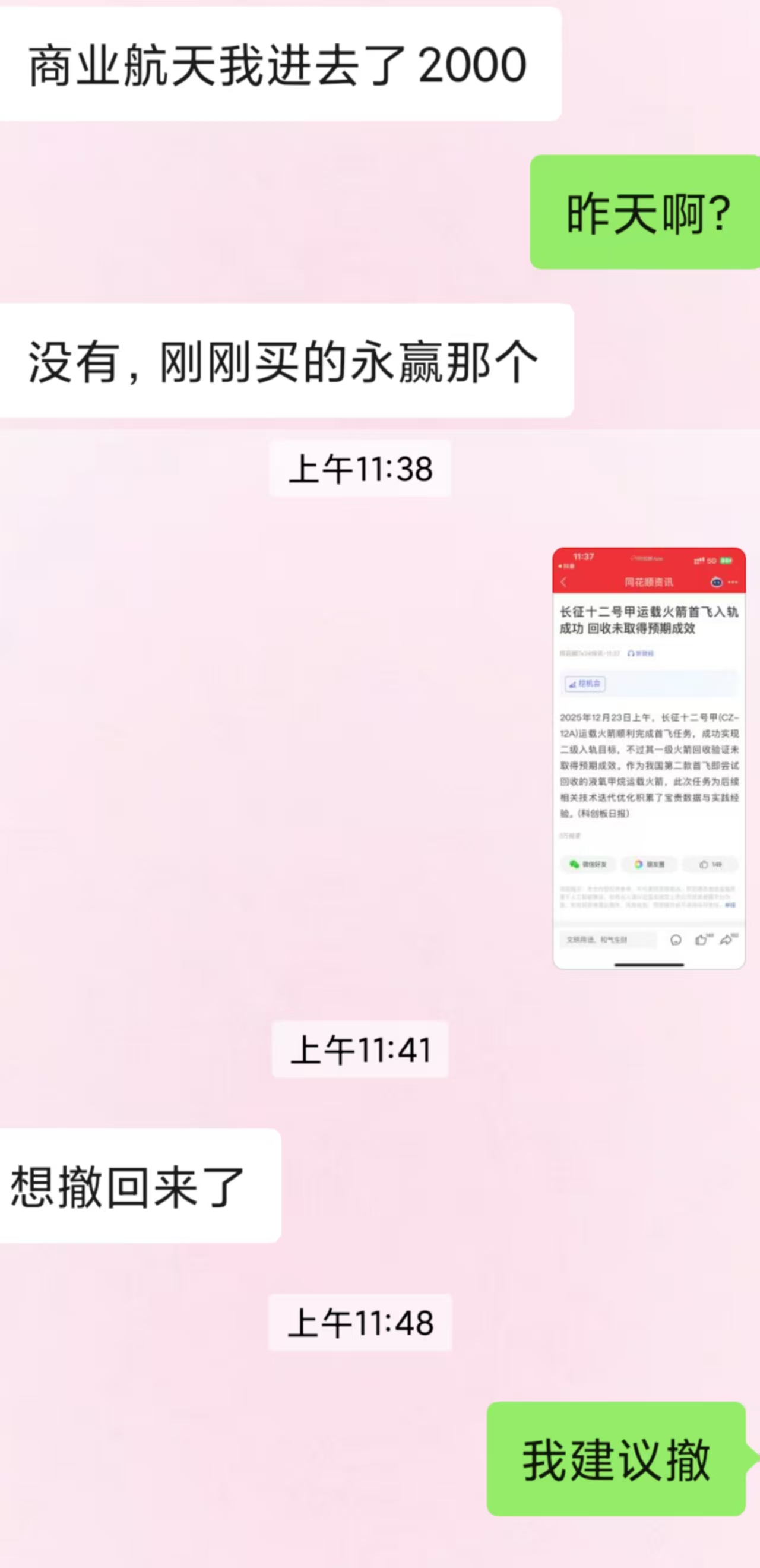 最后聊聊今天崩了的商业航天!板块大幅退潮,说到底还是火箭回收失利的黑天鹅砸盘!但咱得看长远——中国商业航天正处在高速发展期,以前这板块就是炒个发射消息的昙花一现题材,现在马斯克把逻辑彻底打通了:SpaceX要把太空发射成本干到700元/公斤,终极目标是把咱们的CPO光模块、芯片送上天,建太空数据中心!这可是大国必争的赛道!今天有朋友想抄底,兜兜直接劝退——前期涨太多,现在刚拐头,资金承接力还不明朗,风险太大!真想布局,等后续企稳再逐步低吸!