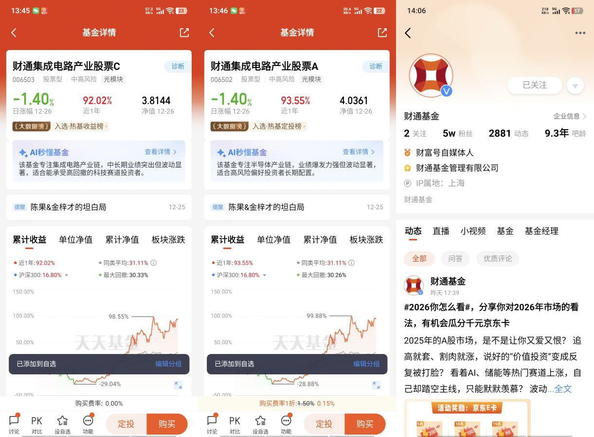 总的来说,站在2025年末看2026年,A股的核心机会已经从“模糊炒作”变成了“确定性成长”,政策的持续支持、产业的全链条复苏、资金的坚定布局,一起构成了集成电路赛道的长期投资逻辑。对咱们普通投资者来说,与其在市场震荡里盲目跟风,不如聚焦核心赛道,借着$财通集成电路产业股票A$ $财通集成电路产业股票C$ 这类深耕全产业链的基金,用长期视角布局,靠确定性对抗市场波动,在“十五五”开局的产业升级浪潮里,拿到实实在在的投资回报@财通基金