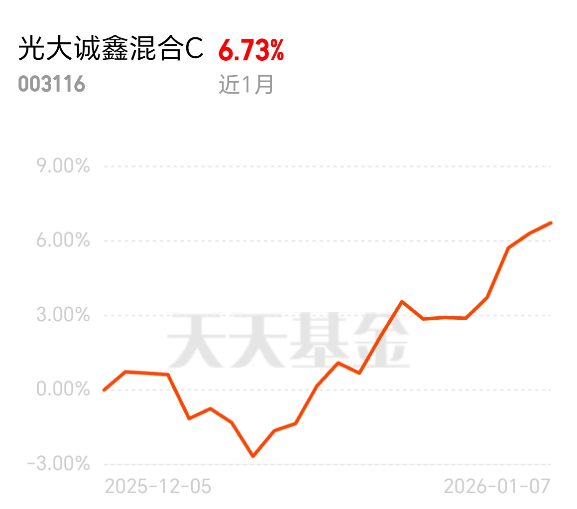 早上听邻居说她买的理财最近赚了点,一问才知道是光大诚鑫混合C近1月6.73%。不