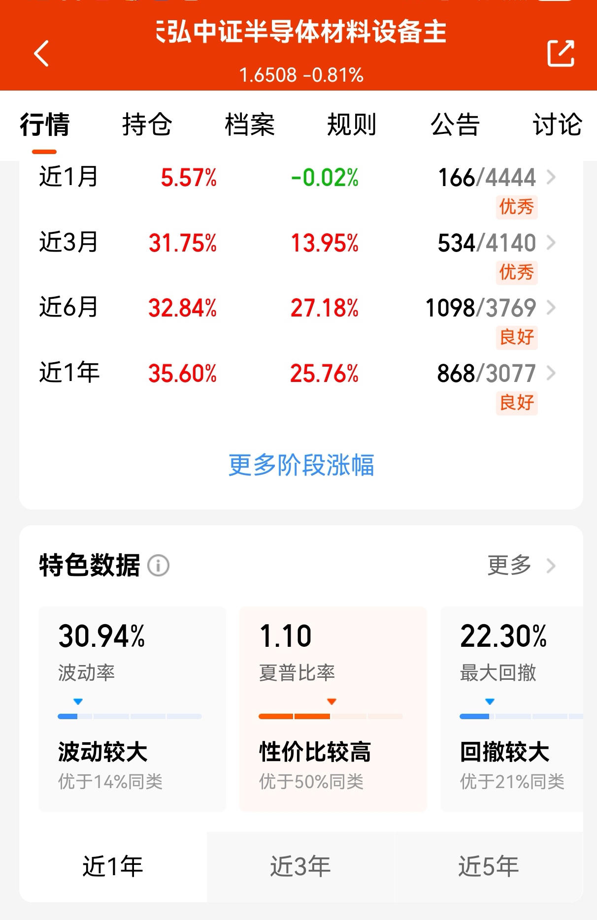 $天弘中证半导体材料设备主题指数发起C(OTCFUND|021533)$还是科技好一点,有涨有跌的,这样也比较健康,逢跌继续补补就是,反正这只基金业绩很不错,近3个月上涨31.75%,近6个月上涨32.84%,排名比较靠前,现在的AI算力发展最终还是要投入到终端应用当中,半导体设备的产业趋势明确,可以继续逢跌加,今日加1000元,慢慢来。
