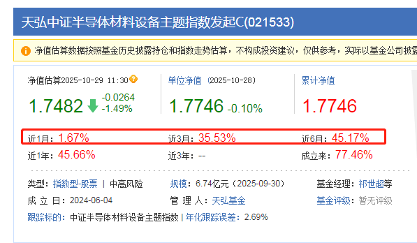 $天弘中证半导体材料设备主题指数发起C(OTCFUND|021533)$回调不要慌,每次跌一跌很快就能修复,而且业绩确实可圈可点,近3个月上涨35.53%,近6个月上涨45.17%,在半导体设备领域,一批具备国际竞争力的企业正快速崛起,成为国产替代的主力军。A股半导体设备行业正处在国产替代加速与技术快速迭代的关键阶段,可以定投潜伏起来,继续看长期了。