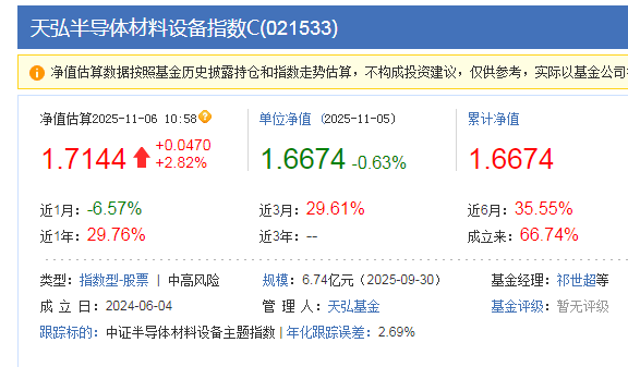 $天弘半导体材料设备指数C(OTCFUND|021533)$最靓的仔就是半导体设备了,虽然最近也有调整,不过有跌有涨也是正常的,我也是一直都低吸,目前看大涨超2.82%。也太强了。伴随外部环境变化带来的自主可控需求上升,半导体设备作为产业链安全的重要一环,其国产替代进程有望进一步加快,做中长线定投不错,这只基反正买入0申购费,满7天卖出0赎回费,所以一定要拿住了。