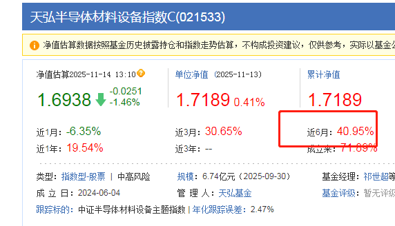 $天弘半导体材料设备指数C(OTCFUND|021533)$回调不要慌,继续加仓就是,反正近6个月业绩确实还可以,超40.95%,而且国产大模型不断的在发力,近期阿里投的月之暗面推出的KIMI K2模型在部分能力上超过了GPT5,但训练成本据说只有460万美元只有GPT的1%,足以说明半导体及其设备发展是很快的,所以业绩也会慢慢好起来,现在趁回调补点仓,迟早会涨回去的。