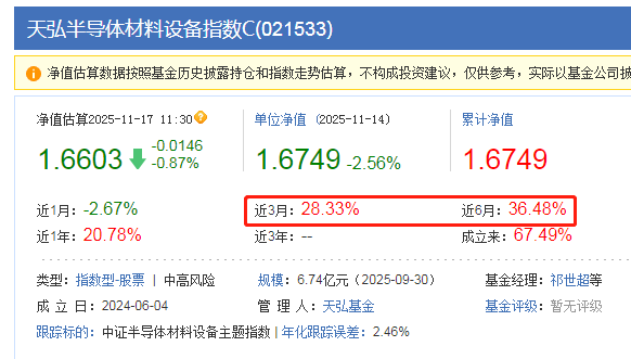 $天弘半导体材料设备指数C(OTCFUND|021533)$近几年全球半导体产业风云变幻,老美对华卡脖子限制不断加码,而国内厂商却在压力下加速成长。特别是在半导体设备领域,一批具备国际竞争力的企业正快速崛起,成为国产替代的主力军。A股半导体设备行业正处在国产替代加速与技术快速迭代的关键阶段。上周加了点,今天调整那就继续加,近3个月涨幅28.33%,近6个月涨幅36.48%,中期看还是赚的,现在慢慢定投潜伏起来做中长线投资就是。