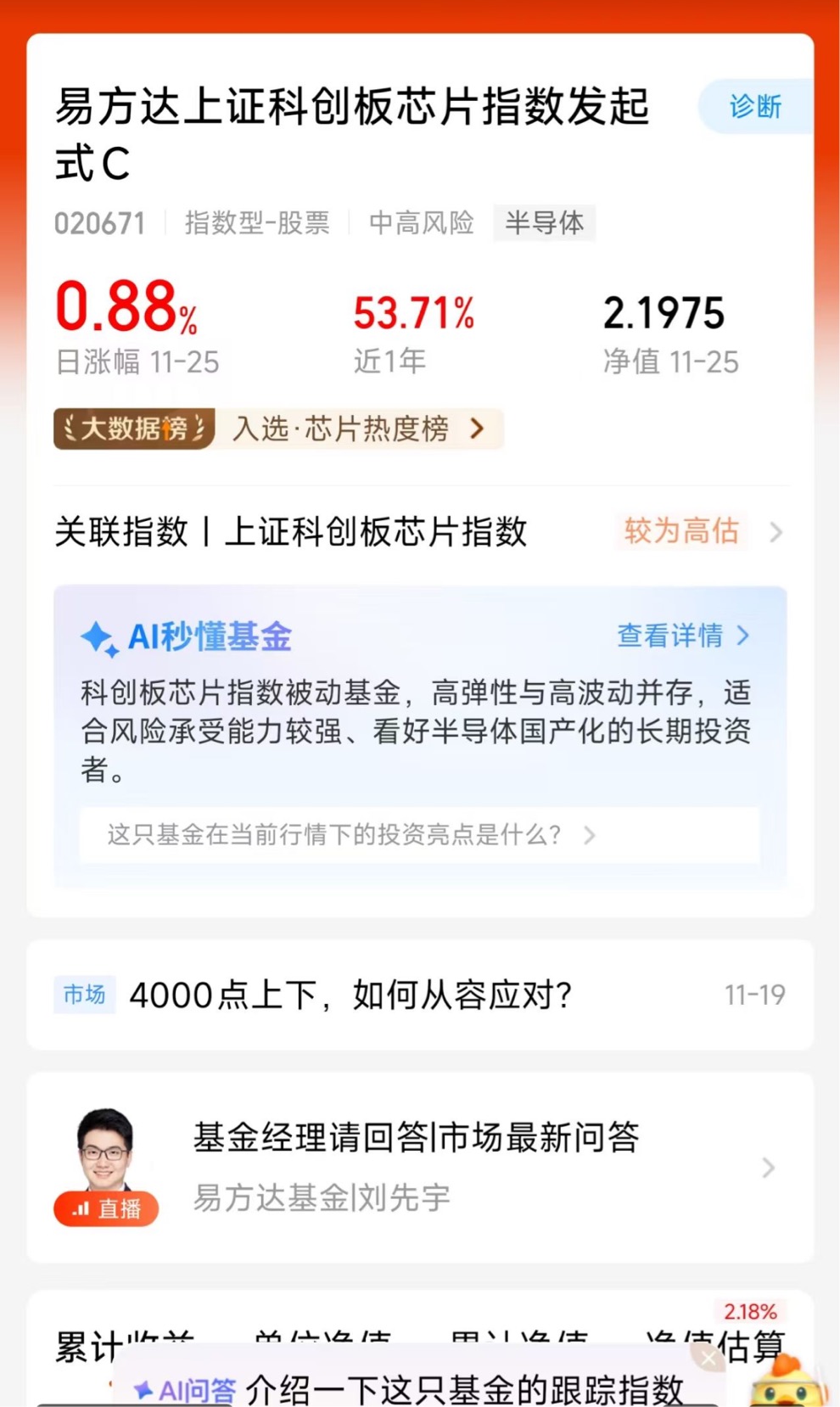 今天中芯国际涨 1.87%、华虹公司涨 2.68%,芯片制造端太给力了!易方达这只基金把中芯国际当重仓,持仓占比 9.09%,刚好赶上行业复苏浪潮。三季报里 59 家科创板芯片企业营收正增长,占比超 86%,行业景气度持续走高,后续肯定还能涨!$易方达上证科创板芯片指数发起式C$