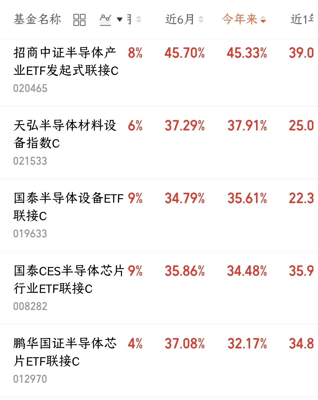 $招商中证半导体产业ETF发起式联接C$ 今年来涨幅45.33%