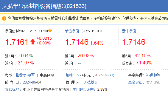$天弘半导体材料设备指数C(OTCFUND|021533)$半导体设备今天继续红,虽然不多,能红就很不错了,昨天大涨1.64%也是挺给力的,近几年,全球半导体产业风云变幻。老美对华卡脖子限制不断加码,而国内厂商却在压力下加速成长。特别是在半导体设备领域,一批具备国际竞争力的企业正快速崛起,成为国产替代的主力军。A股半导体设备行业正处在国产替代加速与技术快速迭代的关键阶段,所以继续拿住看长期就是了。