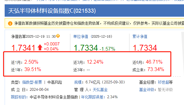 $天弘半导体材料设备指数C(OTCFUND|021533)$今天半导体科技及其设备还在磨盘中,午盘已经翻红了,基本初步形成阶段小双底形态,量能也接近阶段地量,虽然仍可能会有反复,需要等待一些时间,但向下调整的空间有限。所以如果昨天没加仓的话今天可以加点了,说不定下周就有肉吃了,这只基金业绩也是可以的,涨幅居前,近6个月上涨46.71%,还不错呢,继续拿住就是了。
