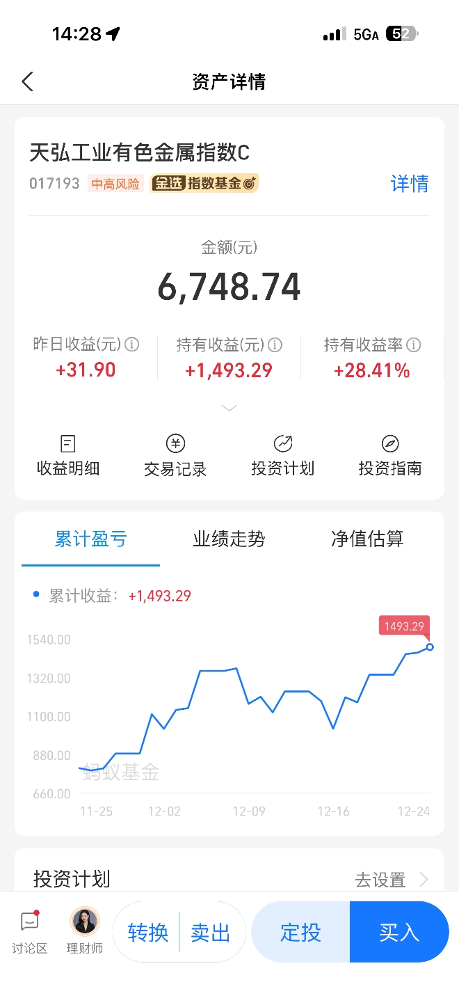 白银最近涨太猛,限额都买不进,偏贵了,不如看看工业有色。天弘工业有色金属A和C业绩表现亮眼,产品持仓风格聚焦铜铝这些底部品种,电解铝价格合理,还有涨价空间。美联储降息周期开启,宏观宽松下,铜铝需求爆发,像数据中心和新能源车都在拉动。我之前买了点,收益不错,现在回调正是逢低布局的好机会,建议大伙儿多关注。