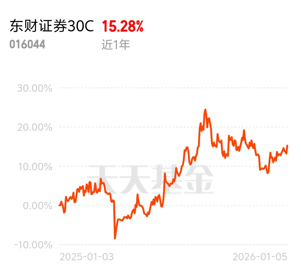 股市交投情绪火爆,IPO 和再融资节奏平稳,券商业务多点开花。东财证券 30C 近 1 年 15.28%,作为互联网券商龙头,跟着行业东风走准能吃肉。$东财证券30C$
