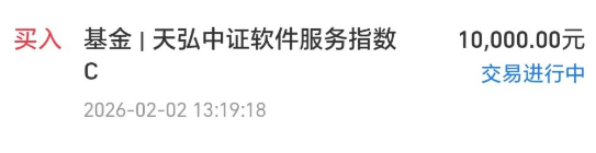 今天我买入$天弘中证软件服务指数发起C(OTCFUND|021536)$1万块钱。
