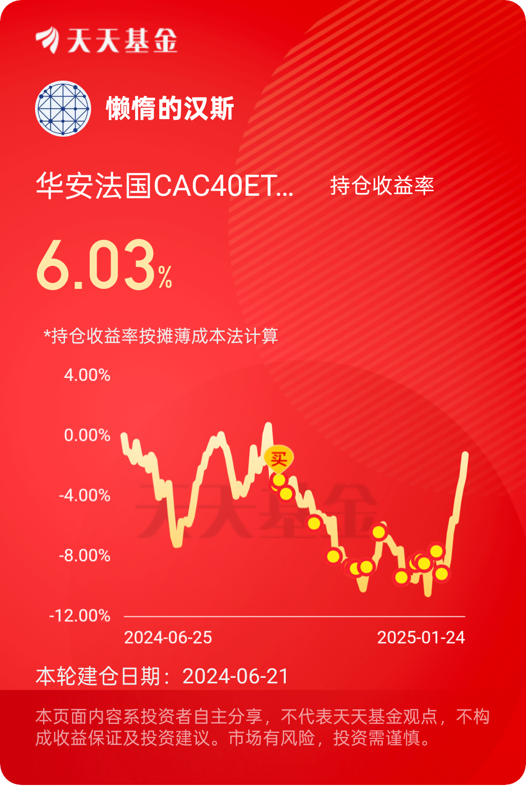 $华安法国CAC40ETF发起式联接(QDII)C[021540]$ #晒收益#