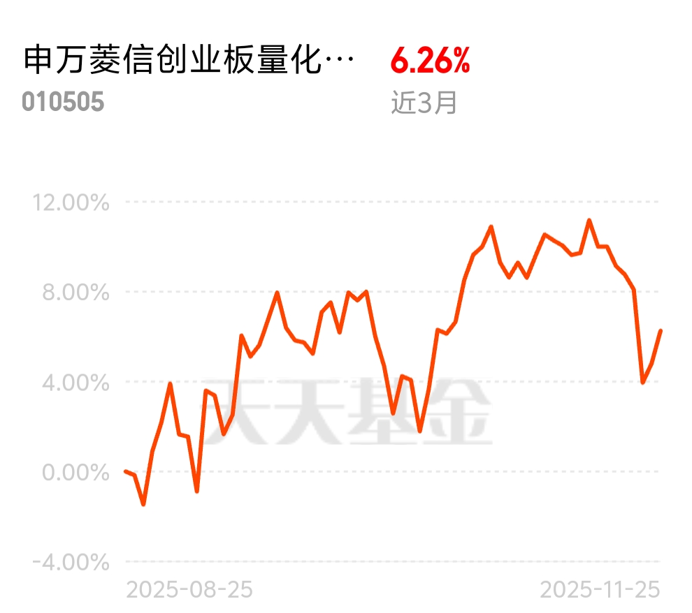 不少人说手里基金没动静,其实创业板早有回暖迹象,CPO、创新药这些热门赛道都在发力。申万菱信创业板量化C踩准了节奏,近3个月收益6.26%,量化策略能对冲波动,还能精准抓机会,趁着行情刚启动,赶紧布局不亏。