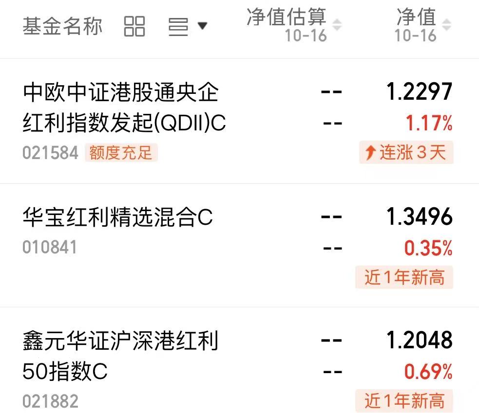 $中欧中证港股通央企红利指数发起(QDII)C(OTCFUND|021584)$今天上涨1.17%
