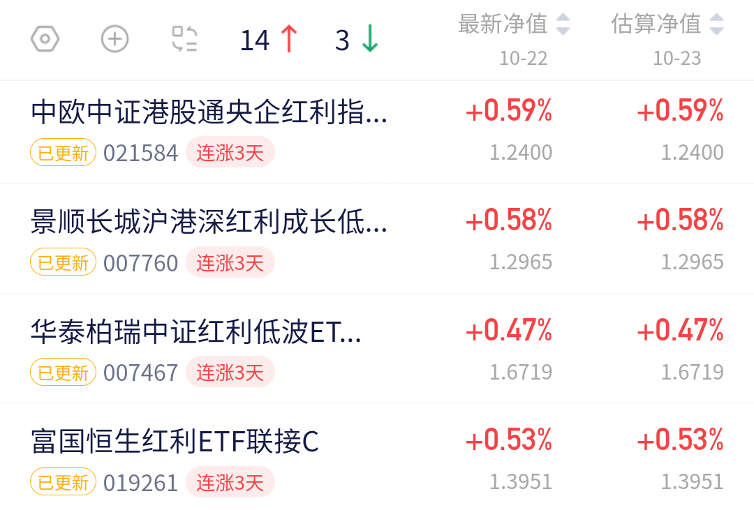 $中欧中证港股通央企红利指数发起(QDII)C(OTCFUND|021584)$上涨0.59%