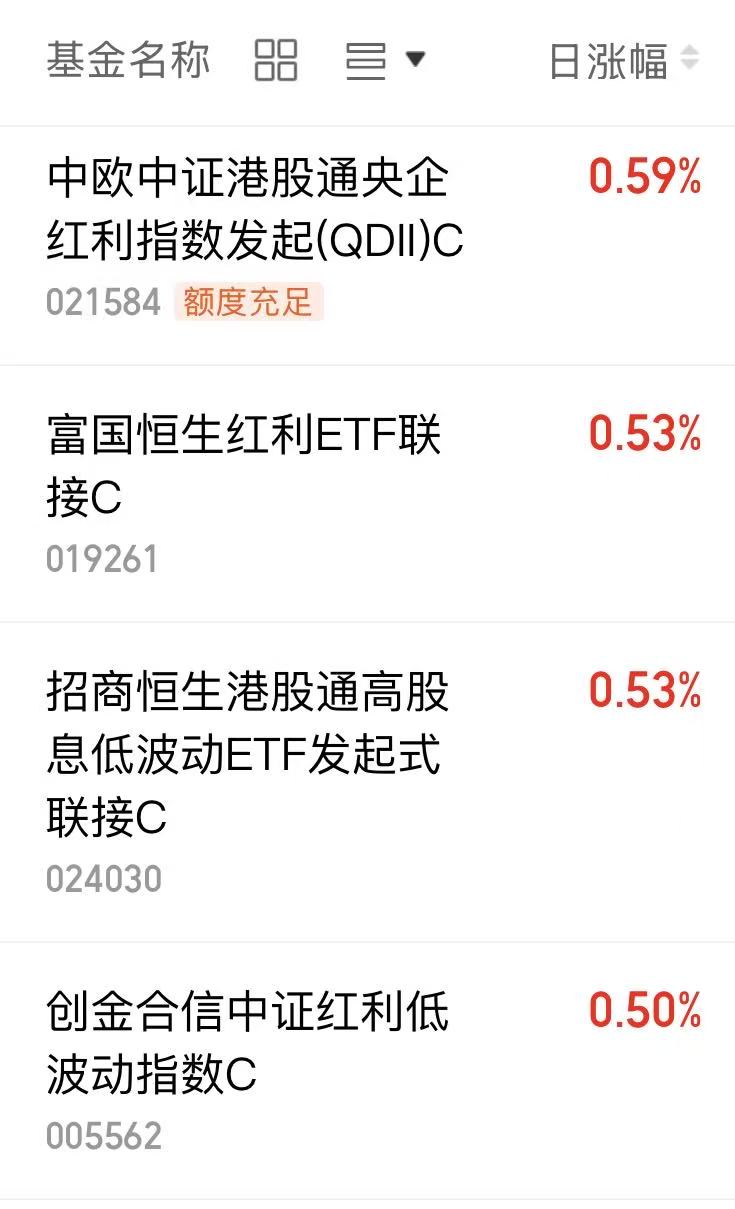 $中欧中证港股通央企红利指数发起(QDII)C(OTCFUND|021584)$今天上涨0.59%