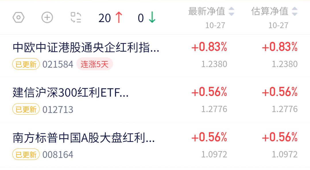 $中欧中证港股通央企红利指数发起(QDII)C(OTCFUND|021584)$上涨0.83%