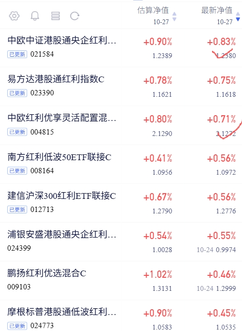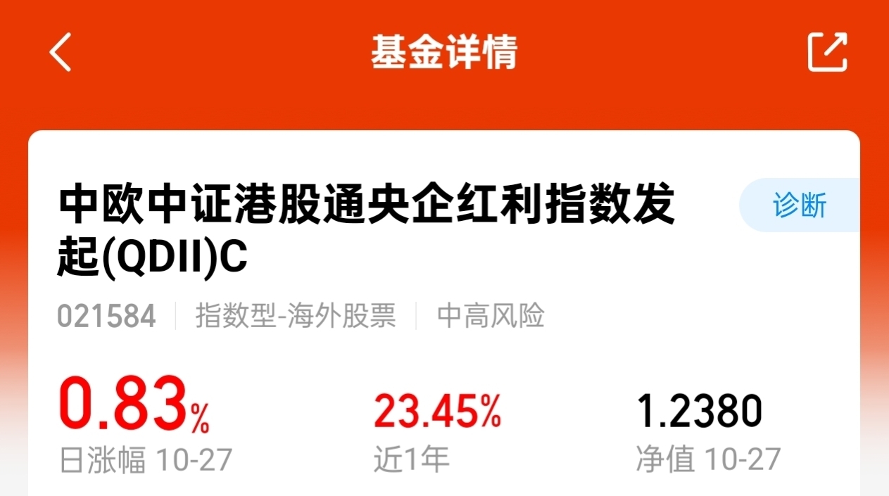 $中欧中证港股通央企红利指数发起(QDII)C$ 今日收涨0.83%,近期业绩稳定波动小回撤低,希望继续保持!