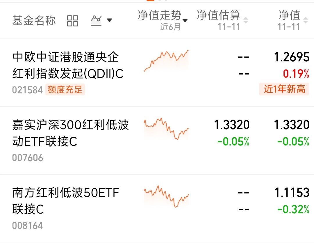 我理财追求的是稳健,在考虑收益的同时,也要考虑基金经理控制回撤的能力,$中欧中证港股通央企红利指数发起(QDII)C(OTCFUND|021584)$今日上涨0.19%,看近6个月走势,值得我关注,$嘉实沪深300红利低波动ETF联接C(OTCFUND|007606)$今日下跌0.05%,$南方红利低波50ETF联接C(OTCFUND|008164)$今日下跌0.32%。