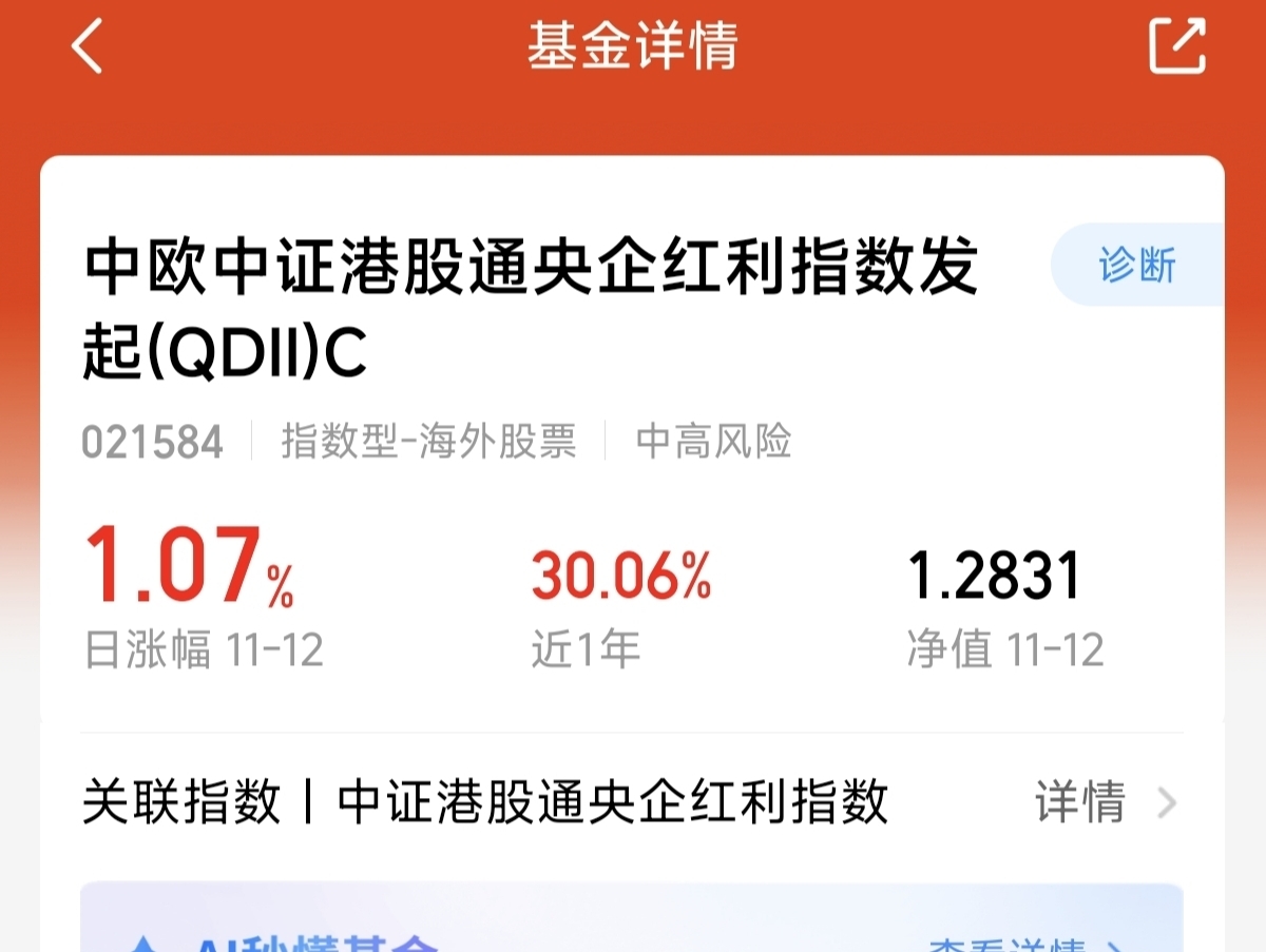 最近的红利表现真的太强了呀。$中欧中证港股通央企红利指数发起(QDII)C$ 今天又大涨了1.07%。不得不说,港股央企红利的表现是真的强。最近每天都是连续突破上涨。近一年涨幅30.06%。也是大幅跑赢了恒生科技指数的涨幅。我看好四季度继续创新号