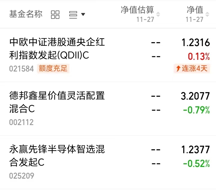 $中欧中证港股通央企红利指数发起(QDII)C(OTCFUND|021584)$今天上涨0.13%。