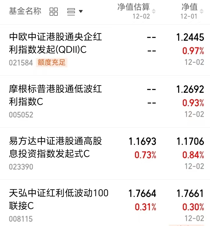 $中欧中证港股通央企红利指数发起(QDII)C(OTCFUND|021584)$今天上涨0.97%;