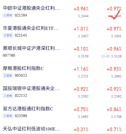 $中欧中证港股通央企红利指数发起(QDII)C$ 今日涨幅0.97%,同类涨幅再度做到了优秀。长期表现的稳定性一直不错。期待四季度继续创新高。
