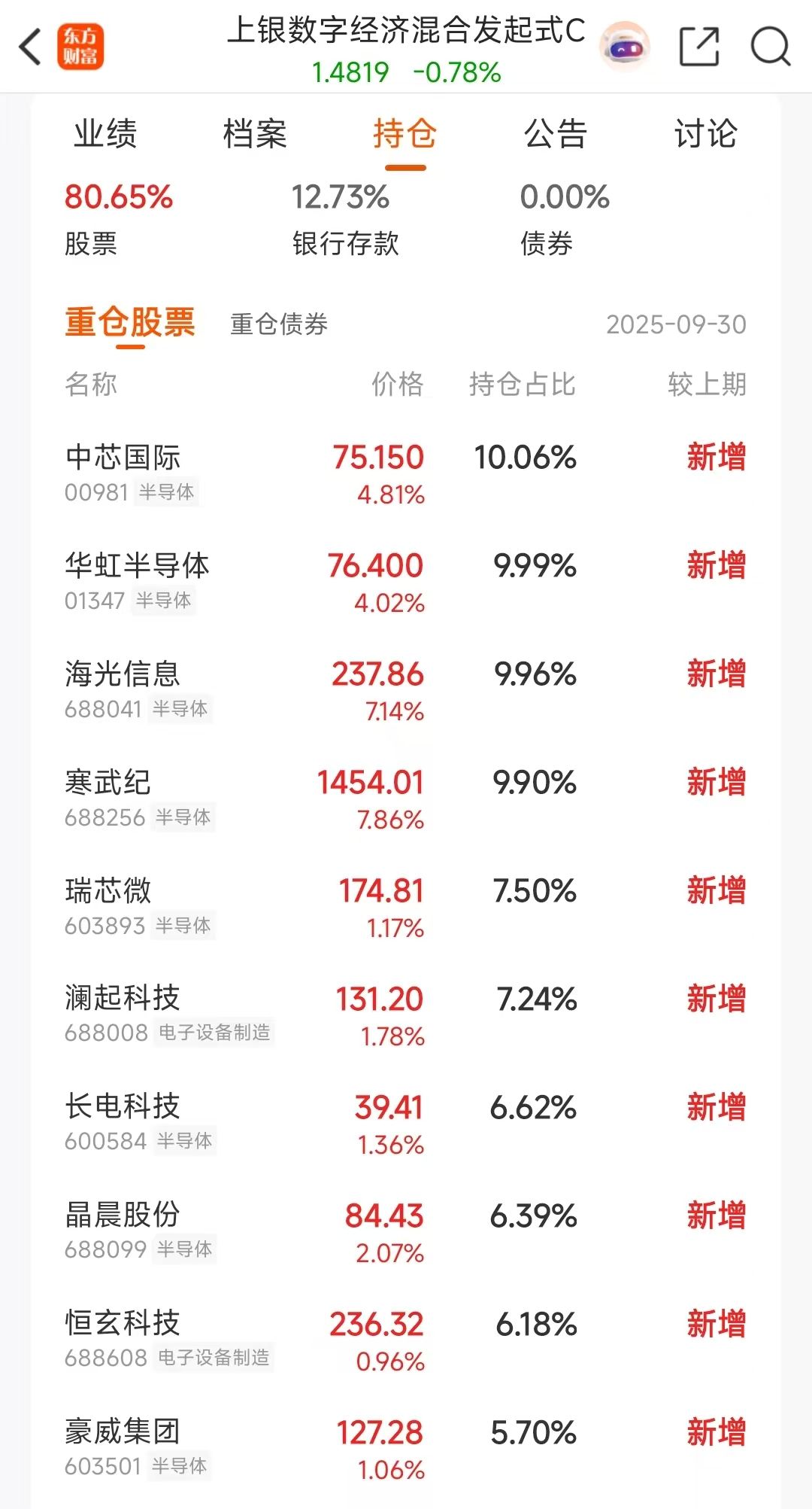 大基金三期发力带动半导体反弹,$上银数字经济混合发起式C$(021594)表现突出。作为纯正芯片基,它重仓的拓荆科技、中微公司,均获大基金精准投资,近3个月涨31.19%。4.5亿资金投向HBM核心设备,政策精准滴灌,反弹趋势明确,C类今天加仓正合适。#4000点 到底要不要止盈?#