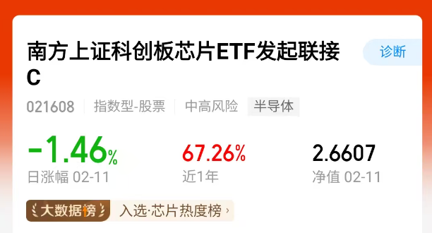 面对这样的行情,很多朋友可能会纠结,个股波动太大不敢追,又怕错过这波红利,这时候最好的选择就是借道基金,尤其是像南方上证科创板芯片ETF发起联接C(021608)这样的工具。这只基金跟踪的是上证科创板芯片指数,里面全是澜起科技、海光信息、中芯国际这样的硬核龙头,可以说是“含芯量”最高的指数之一。在震荡行情中,与其去赌单一个股的涨跌,不如通过这种指数基金一键布局整个产业链,既能分散风险,又能稳稳抓住芯片国产化和AI算力这两大主线。