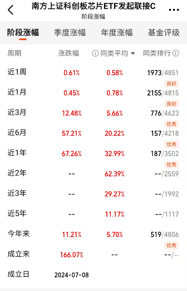 数据显示,这只基金近一年的收益率已经超过了67%,成立以来更是涨了166%,业绩弹性非常强,而且作为场外联接基金,没有股票账户的朋友也能直接买,门槛低、操作方便,绝对是当下布局芯片板块的利器。所以,兄弟们,别犹豫了,主线行情稍纵即逝,赶紧上车才是硬道理!