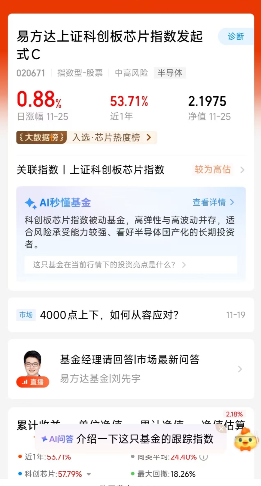 寒武纪这匹黑马太能打了!基金持仓 8.13% 太明智,它前三季度赚 16 亿,产品还在多个重点行业规模化部署。现在人工智能应用落地加速,AI 芯片需求持续攀升,加上公司技术不断优化,稳定性经住考验,这只基金后续收益太有保障了!$易方达上证科创板芯片指数发起式C$