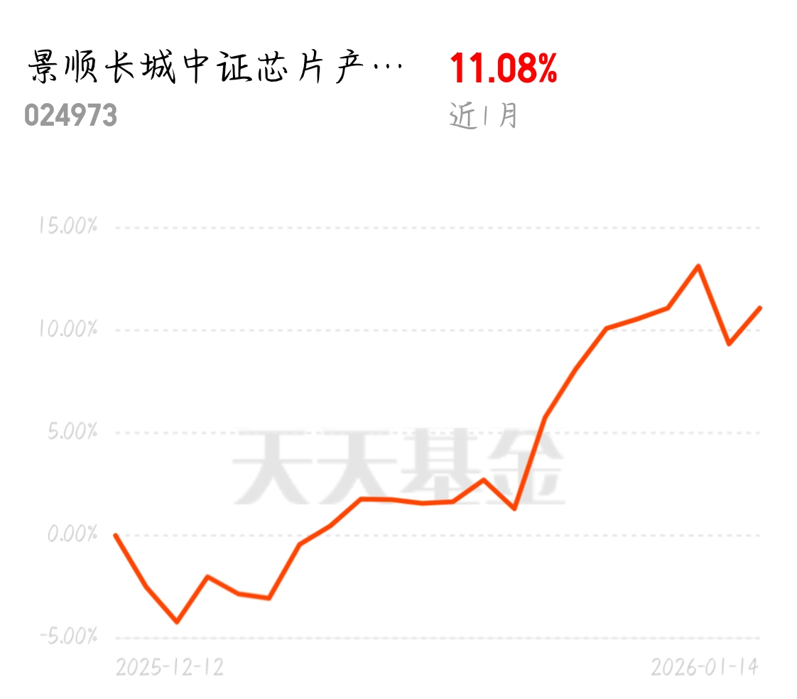 芯片设计企业密集登陆资本市场,赛道融资环境持续向好,AI 依旧是市场主线,芯片作为核心硬件缺一不可,昨天芯片走强势今天小幅回调,跌幅远低于人工智能,景顺长城中证芯片产业 ETF 联接 C 紧跟芯片产业指数,近 1 月 11.08%,反弹超有劲儿,申购 0 费率 7 天免赎回费,持有成本更划算。$景顺长城中证芯片产业ETF联接C$