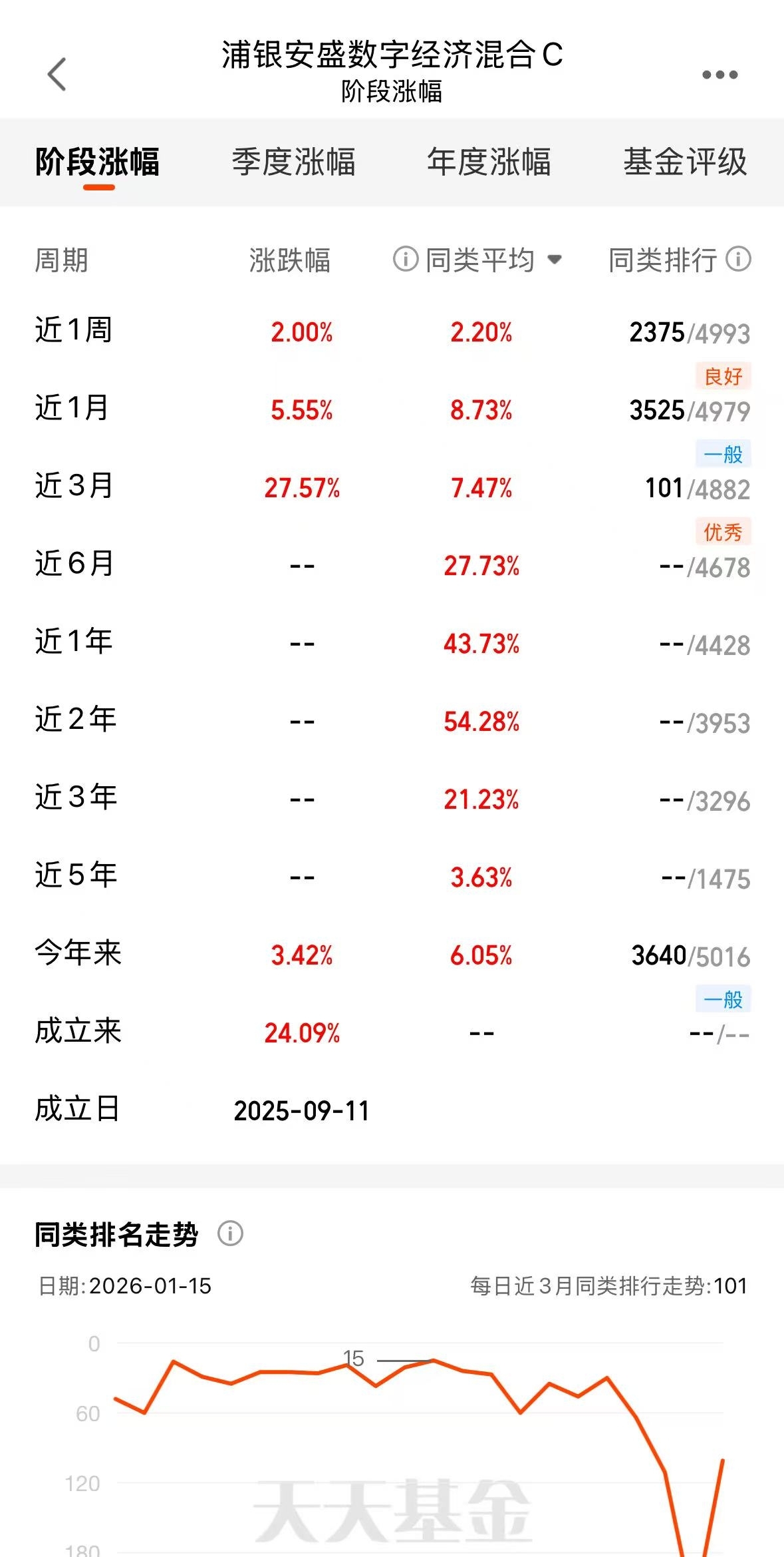 不到40%不赎回,浦银安盛数字经济这只CPO主动基我锁死了。新成立的浦银安盛数字经济没负担,冲劲十足$浦银安盛数字经济混合C$