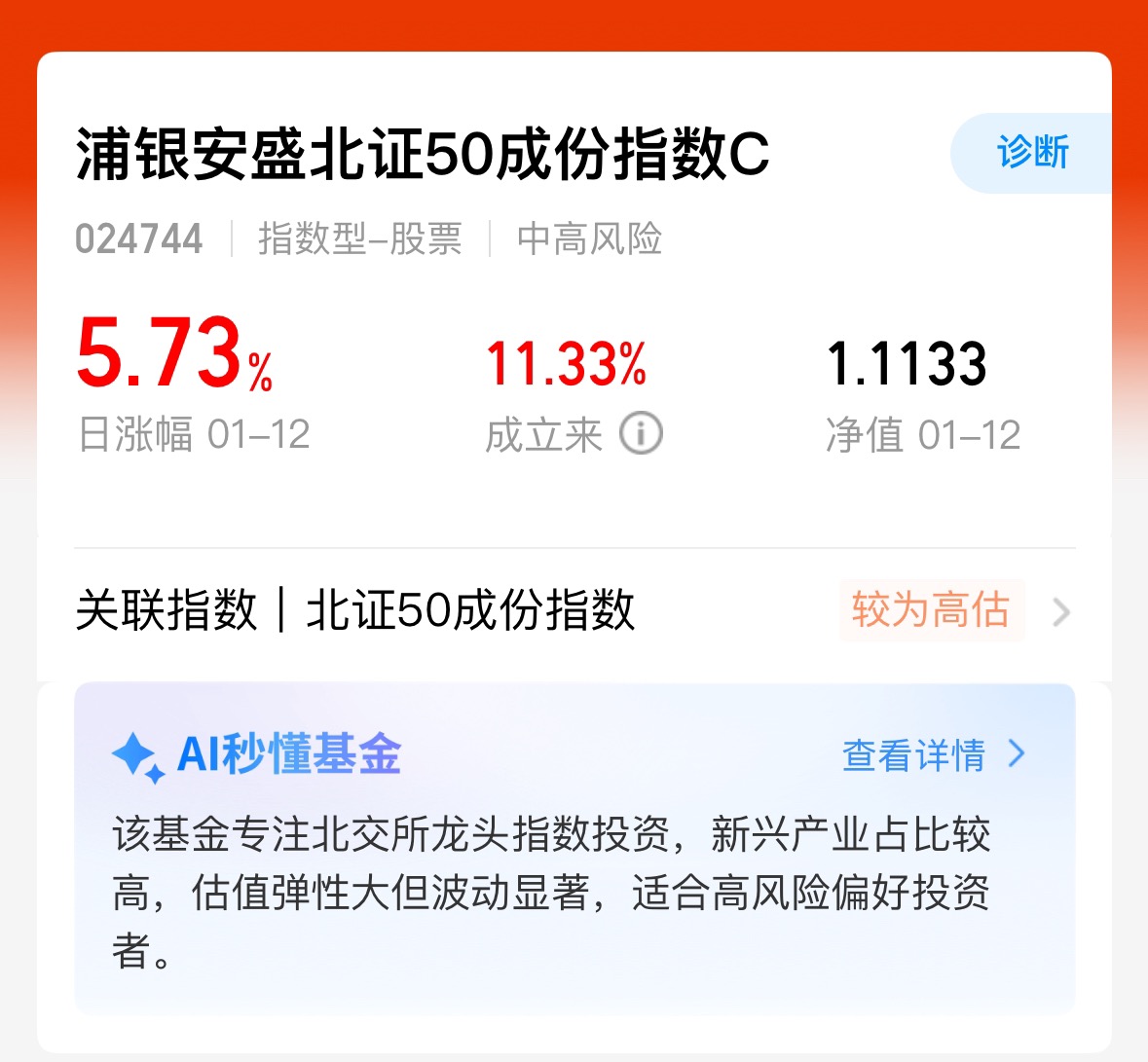 北证50成资金新宠,性价比突出!浦银安盛北证50今日跑赢指数,额度管够不限购,低费率持有更划算$浦银安盛北证50成份指数C$