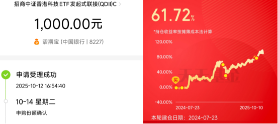 以招商中证香港科技ETF发起式联接(QDII)C这只基金为例:持仓覆盖港50只研发投入高、营收增速快的港股科技龙头,业绩远超同类基金,持续聚焦港股科技板块核心资产,重点配置互联网平台、半导体、生物科技等新经济领域以及政策红利释放、盈利修复确定性较高的龙头企业,把握住了行业的结构性机会。
