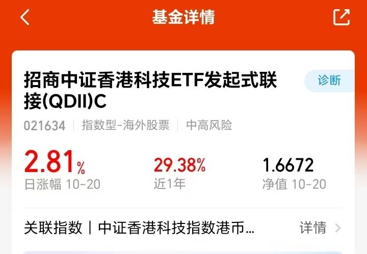 $招商中证香港科技ETF发起式联接(QDII)C(OTCFUND|021634)$昨天大涨2.81%,今日盘中估值继续上涨2.65%,这个是覆盖互联网、AI消费、半导体等优质赛道的,近六月业绩涨幅20.17%,表现优于同类。我继续看好港股成长潜力,现在位置性价比不错,我也计划分批布局起来啦。