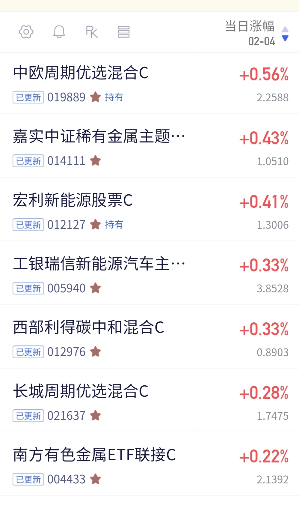 我滴妈呀晚上更新了还好我的有色继续保持上涨,今天算是第二天反弹,继续看好修复行情,晚上更新看看最新净值。
