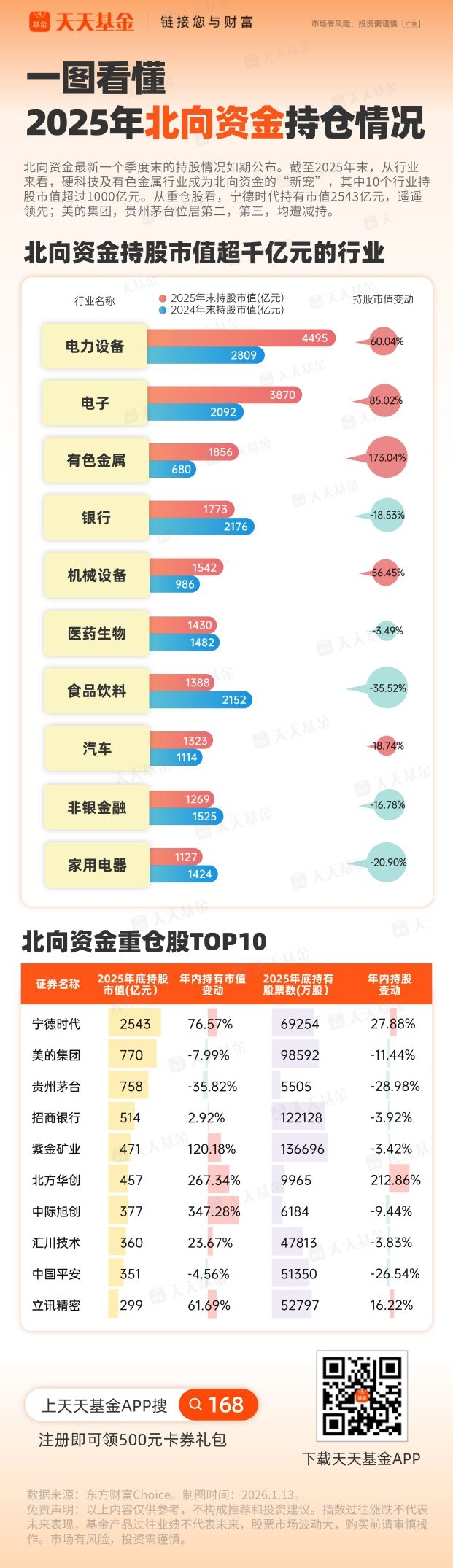——仅结合2026年1月13日的市场行情与2025年末北向资金持仓,释放的信号看,
