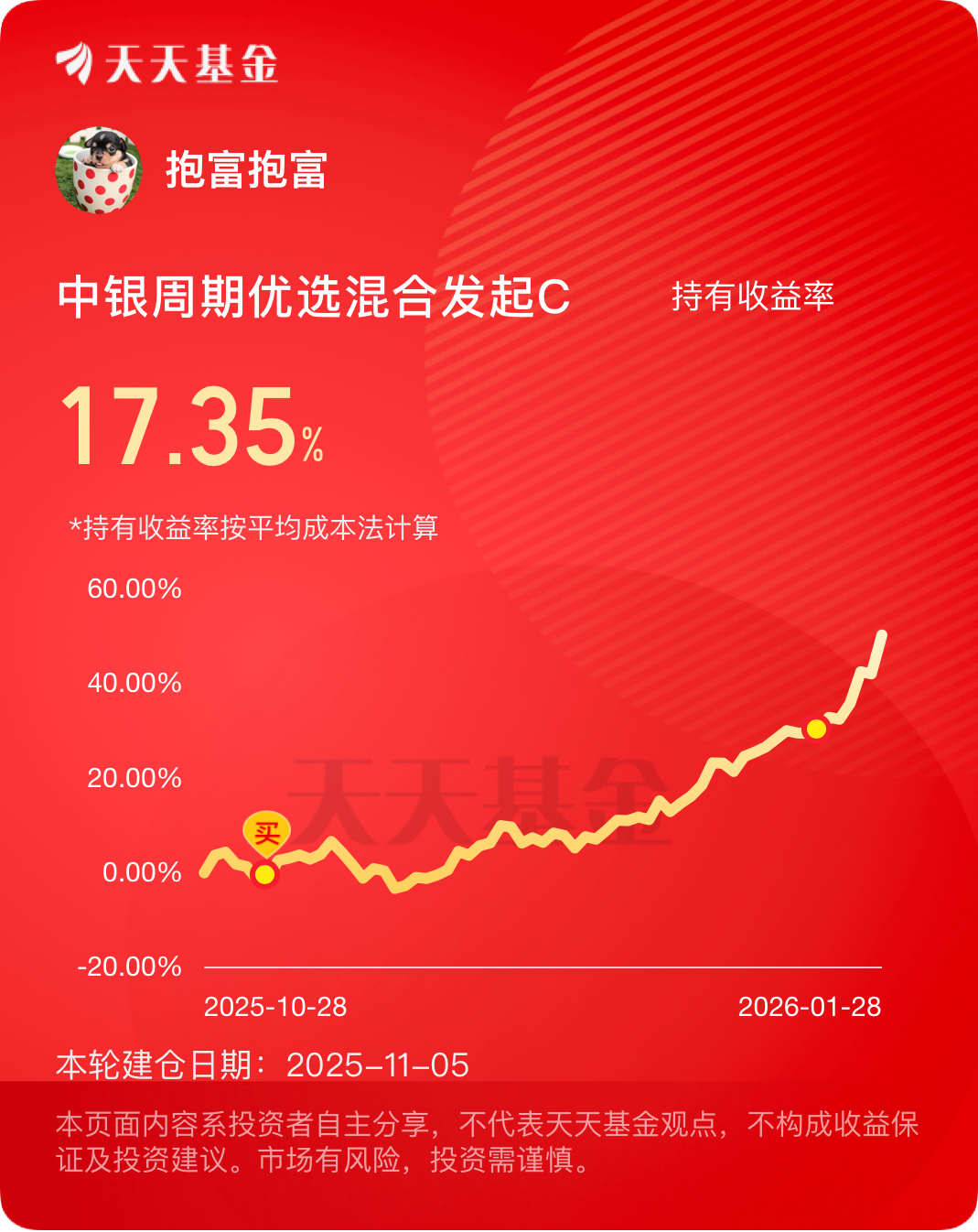 这只基专门盯周期行业,会跟着行业轮动调整,选龙头和有潜力的个股,还会灵活搭配股债,不用自己费心盯行情。