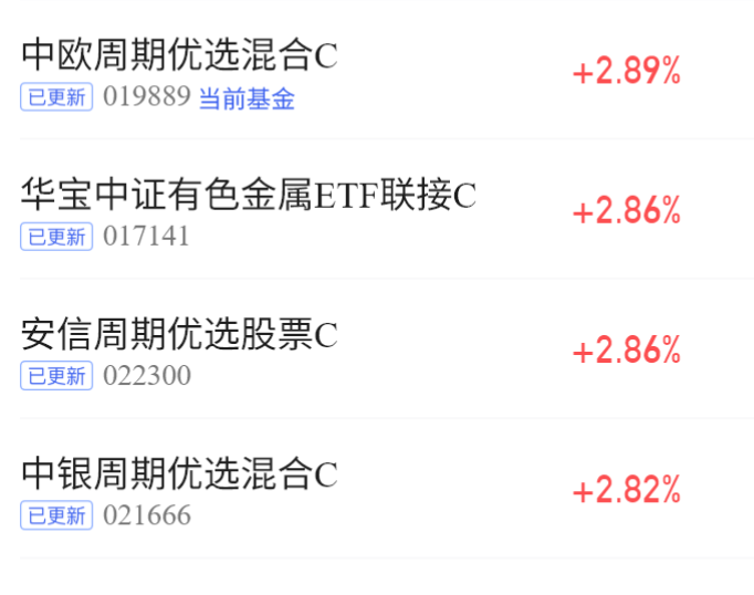 中欧周期优选混合C今日涨2.89%,表现亮眼,重仓资源品与制造业龙头,攻守兼备。周期主升浪未尽,短期波动不改长期逻辑,继续持有吃肉更香。