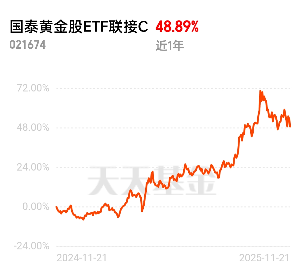 #金属板块还能买吗# 2025年的全球投资市场,黄金无疑是绝对主角——伦敦金现货年内涨幅超51%,站稳4000美元/盎司高位,而黄金股板块更是上演“加速度”行情,Wind黄金行业指数年初至10月中旬暴涨100%,远超同期金价涨幅,紫金矿业、招金黄金等龙头企业市值持续刷新纪录,成为市场最耀眼的明星。这波行情绝非偶然,而是金价高位运行、企业盈利爆发、宏观环境支撑的多重共振。对于普通投资者而言,直接布局个股门槛高、择股难,而$国泰黄金股ETF联接C$ 凭借精准跟踪中证沪港深黄金产业股票指数的优势,以低门槛、高弹性成为分享黄金股牛市红利的最优选择。