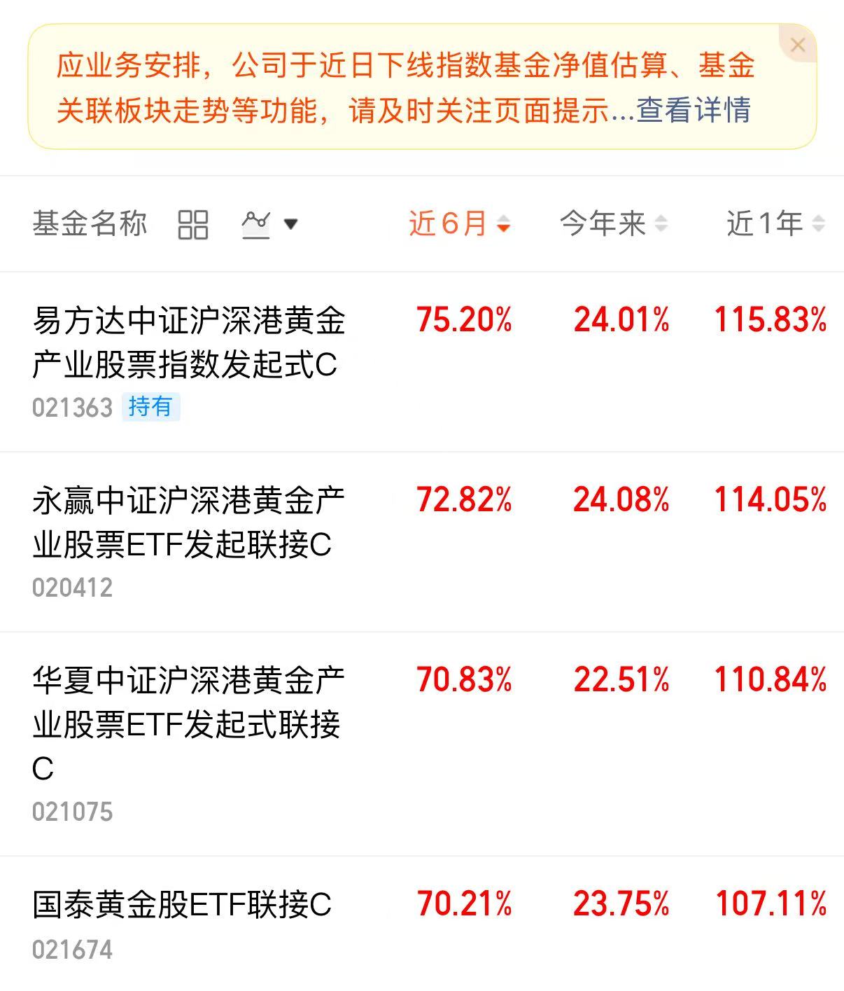 $永赢中证沪深港黄金产业股票ETF发起联接C(OTCFUND|020412)$