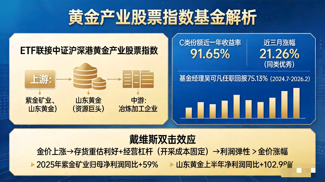 初次关注到这只基金,是因为它的稀缺性。它不是直接投资于金条或上海金,而是通过ETF联接的方式,一键布局中证沪深港黄金产业股票指数。这意味着,我买入的并非静态的贵金属,而是一个囊括了内地与香港市场的黄金产业链——从上游的紫金矿业、山东黄金这样的资源巨头,到中游的冶炼加工。