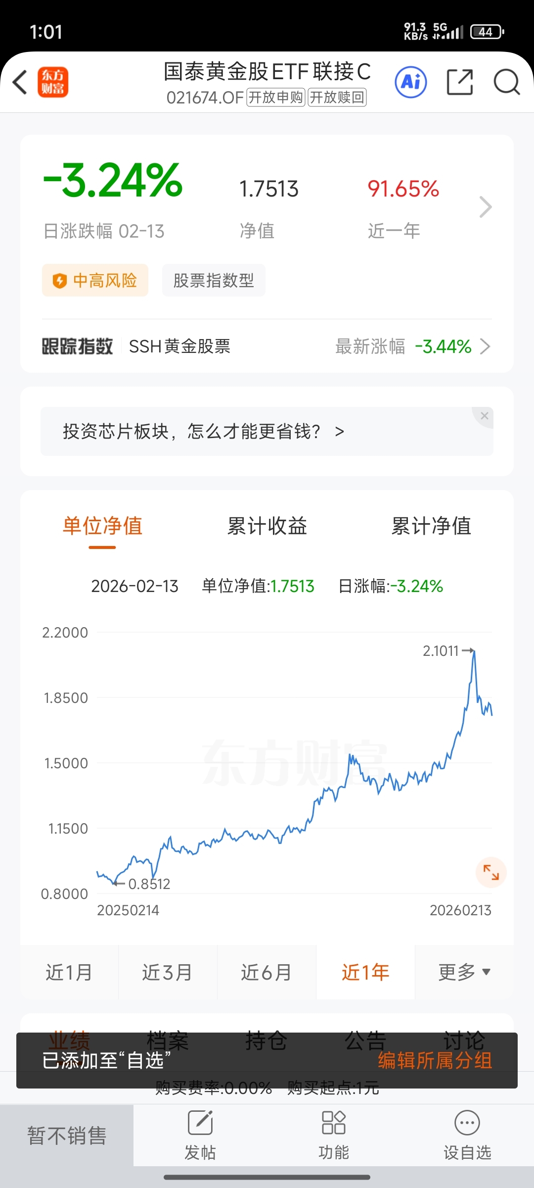 持有021674的过程,并不是一段完美的体验。你会经历2026年1月资产飙升的狂喜,也会经历2月初金价高位跳水的窒息感。