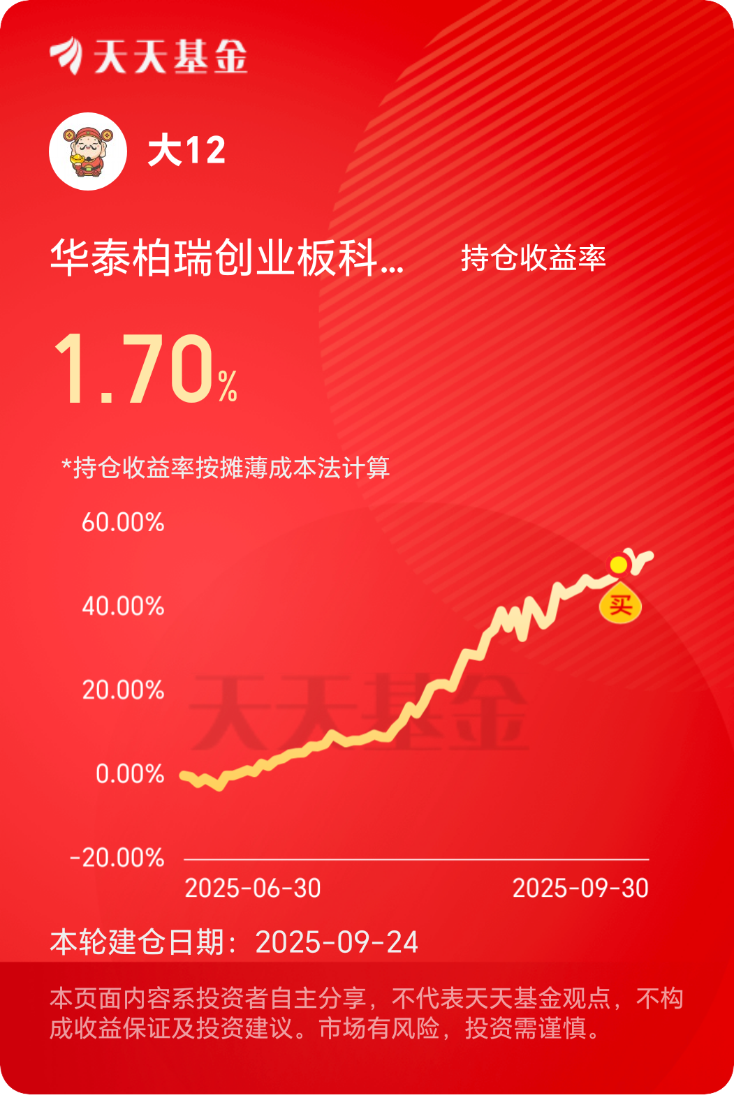 #晒收益# 芯片、电池这些赛道一起动,市场情绪不错。$华泰柏瑞创业板科技ETF发起式联接C$ 今天估值涨1.78%,近3个月涨了52.36%,科技行情还在持续。