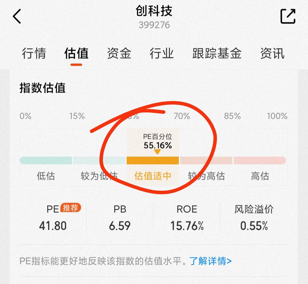 今天大盘回调,创业板回调幅度偏大,跌幅超3%,很多人有些担心,但是我认为创业板目前处于持续牛市中,一两天的回调不太可能会改变趋势,并且从估值上看,创业板科技PE估值大约是41.8倍,处于历史55%分位,估值并不算高,因此也无需恐高,我认为牛市中的回调反而可以看做是机会,今天创业板回调我决定追加1000元增大仓位。