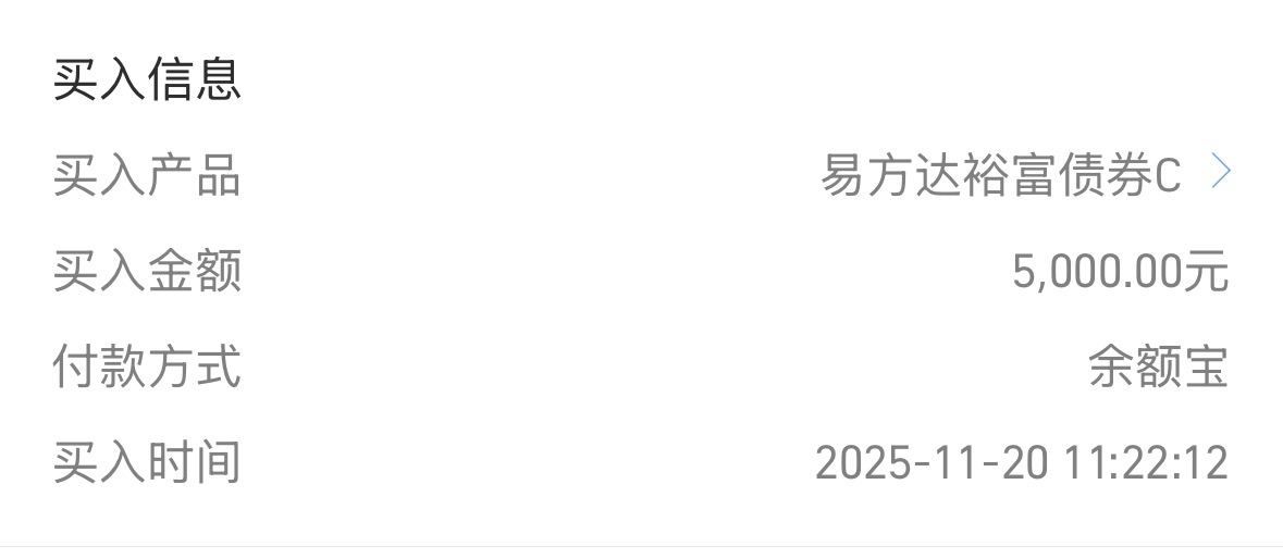 今天股债两市小幅回暖,从走势来看,已经开始有了止跌企稳的迹象。前几日的波动释放了不少短期抛压,打算继续配置一点固收+,像易方达裕富债券C这类偏债型固收+太适配当下行情了,信用债占76.24%、利率债5.83%,当稳心压舱石,仅17.3%可转债和19.28%权益类(覆盖科技、新能源、周期等)提收益,持仓均衡能扛住轮动震荡。近一年收益率9.71%,既有债基稳健性,又能靠权益赚点额外收益,实现进可攻退可守,非常适合长期持有,阿诗今天继续加5000元~