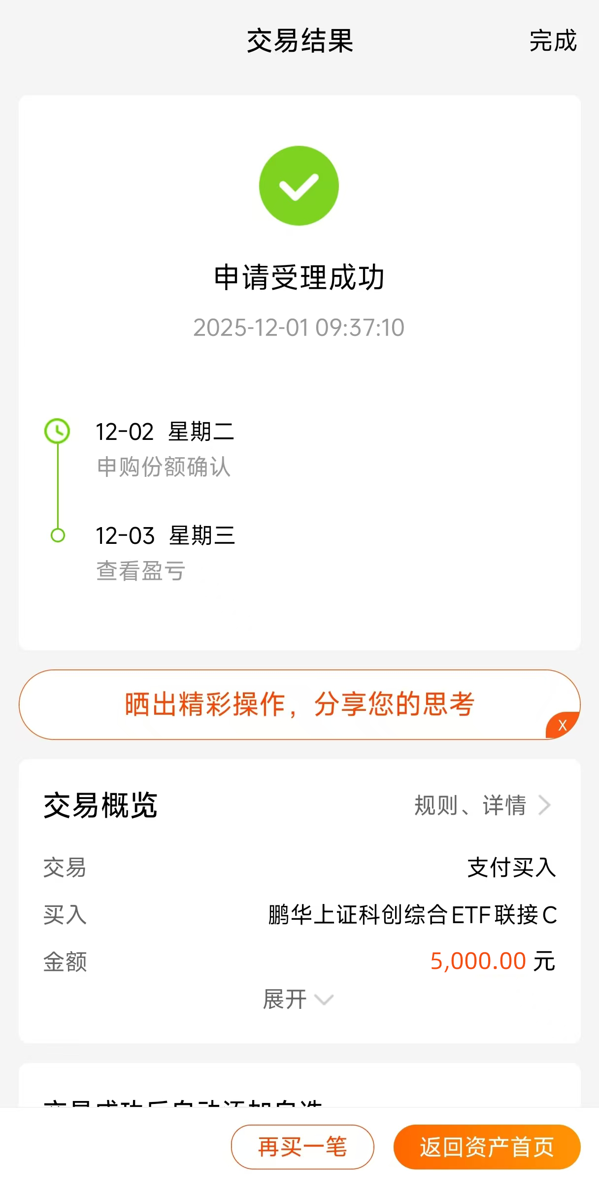 我刚买了点$鹏华上证科创基本ETF联接C$(023758),主要是看好科创板作为创新聚集地的长期潜力。这个基金跟着的指数了科技创新的各个方向,从底层技术到应用场景,布局比较全面。最近市场虽然有些波动,但在关键领域有实质进展的企业依然表现出很强的生命力。通过基金参与,分享整个生态的成长。起步金额要求不高,操作也方便。我已经开始行动了,觉得这是参与科创领域比较好的方式。#12月基金投资策略#