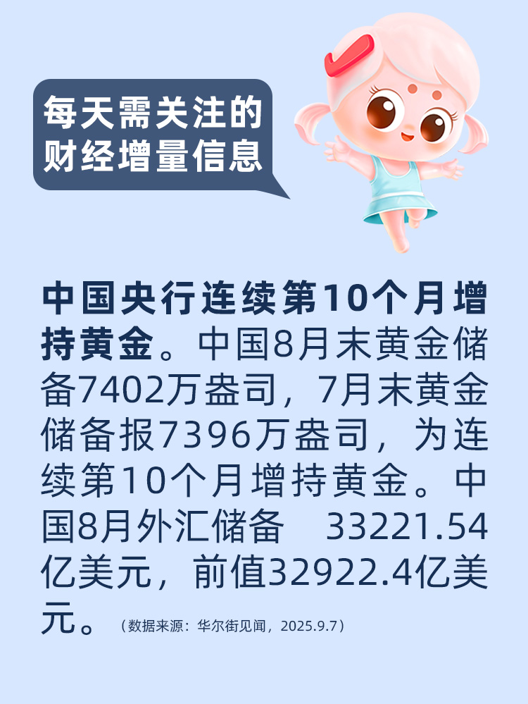 【每天需关注的财经增量信息】中国央行连续第10个月增持黄金
