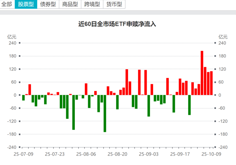 2、 股票型ETF自2025.9.23以来连续7个交易日净流入。